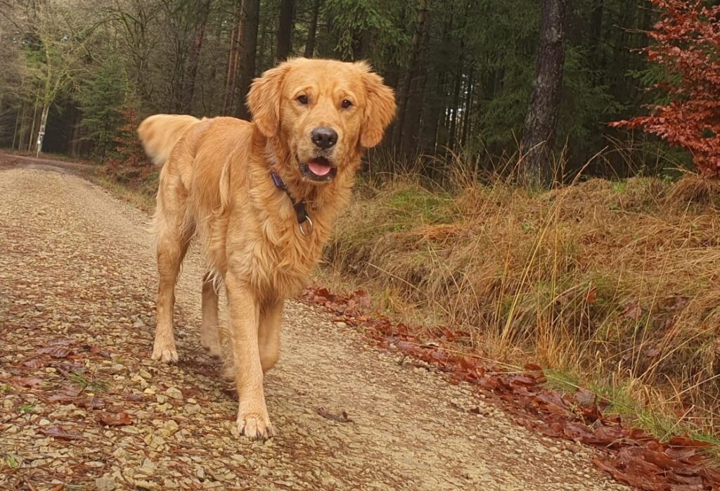 Die fast 3-jährige Golden-Hündin bewegt sich sicher durch die belebte und