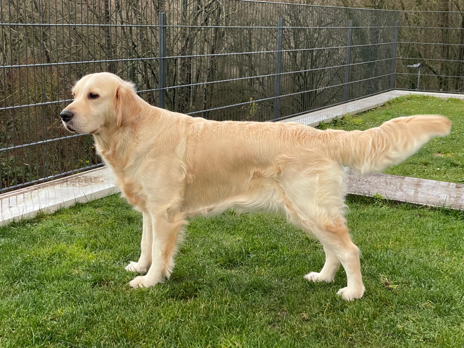 v 1½ Jahre alte Hündin im dunkelgoldenen Haarkleid, femininer Kopf, dunkles Pigment und Auge, Hals gute Länge, gerade obere Linie, Vorbrust passend zum Typ, Brust von guter Tiefe, korrekte Vor- und Hinterhandwinkelung, korrekt getragene Rute, bewegt sich mit viel Schub, paralleles Gangwerk, freundliches, verschmustes Wesen. Richter: Port |